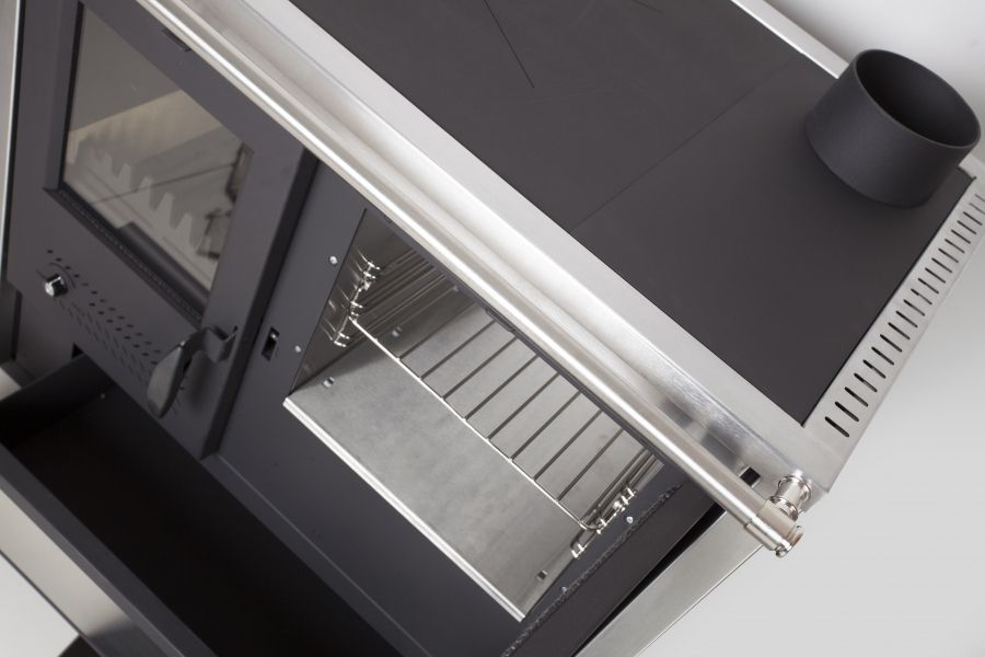 Produkty (74) > ALFA PLAM Sporáky na dřevo, pelety (35) > TIM SISTEM, NORTH HYDRO ECO L INOX 16 kW, etážový sporák na TP